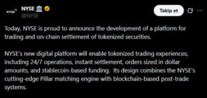 According to the NYSE, the platform has been designed to support on-chain trading and instant settlement of tokenized equities. Once the necessary regulatory approvals are obtained, the system will offer continuous trading, real-time settlement, stablecoin-based funding, and multi-blockchain support. Investors holding tokenized shares will retain traditional shareholder rights, including dividend payments and participation in corporate governance. In this way, digital asset infrastructure will be aligned with existing capital market standards.