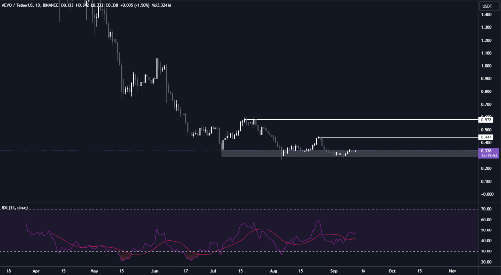 • Aevo Coin has been trading sideways at low levels against the market for a while. It is currently near bottom levels, but if it closes below the support zone (gray box), the decline is likely to deepen.
