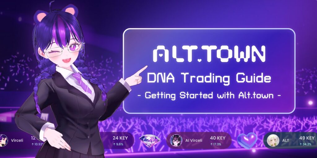 Alt.town is a Web3 platform that allows the value of virtual content creators to be traded as digital assets. The platform enables virtual celebrities such as VTubers, virtual influencers, and virtual idols to gain value based on their content and fandom. Users can purchase the digital token called DNA for their favorite virtual celebrities and benefit from potential value appreciation.