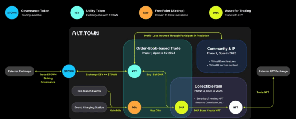 In simple terms, Alt.town converts the popularity and success of virtual celebrities into tradeable assets called DNA. Fans can invest early in a promising virtual celebrity by buying DNA and aim to earn as the celebrity gains popularity. The project leverages Web3 technology to turn fandom economies into tangible financial models.