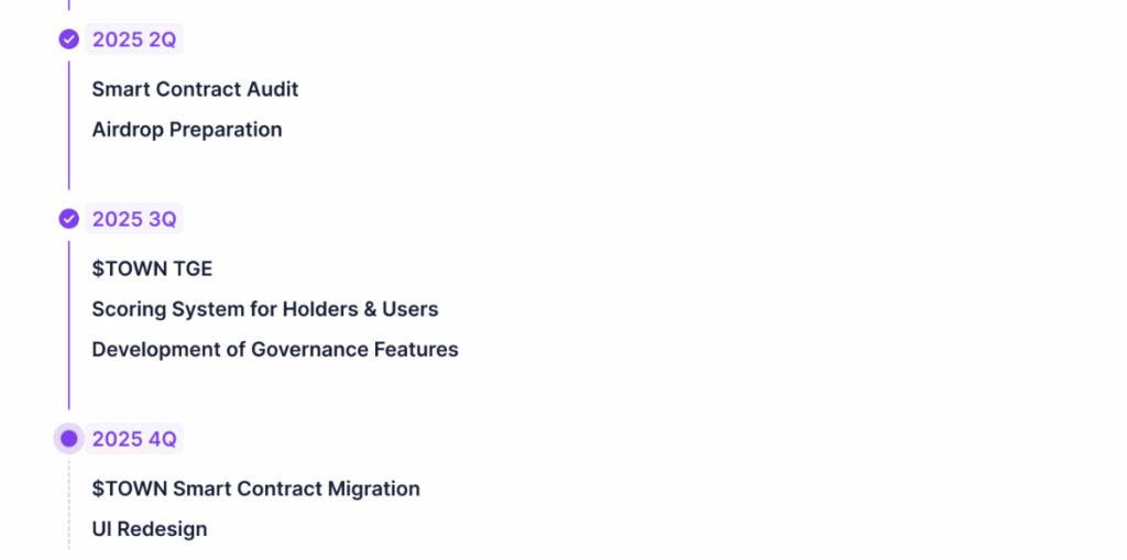 Staking: $TOWN stakers earn $veTOWN at a 1:1 ratio. $veTOWN holders receive staking rewards in $TOWN. Detailed rules will be announced officially.