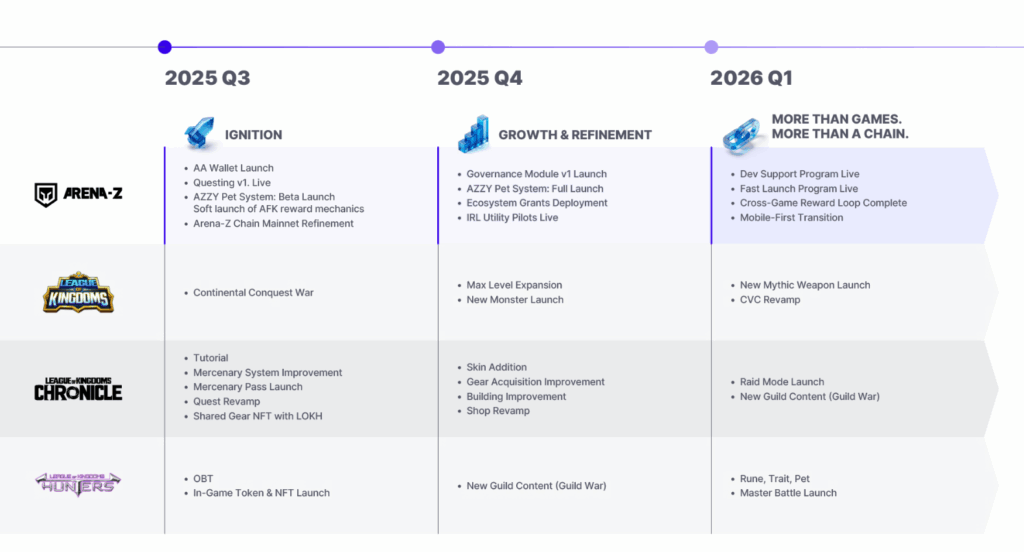 • Q3 2025: Token swap & listings, AZZY Pet Beta, mission system, AFK rewards, mainnet updates