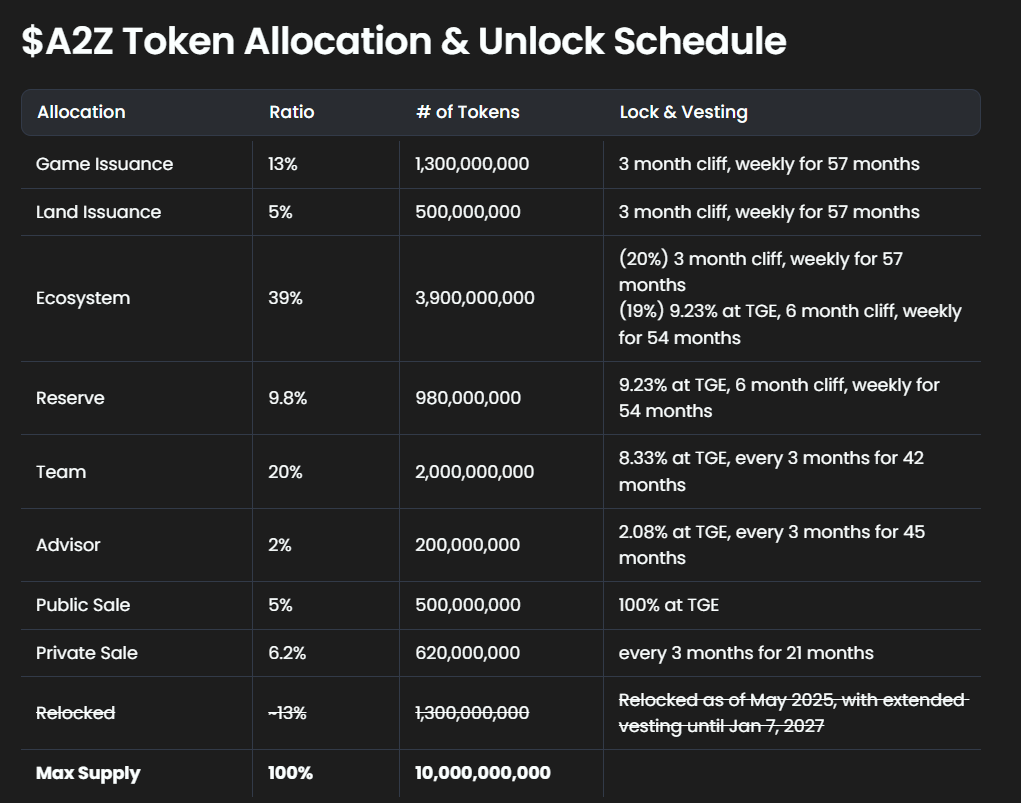 • Relocked Tokens: 13% of supply re-locked until Jan 2027 to avoid supply shock.