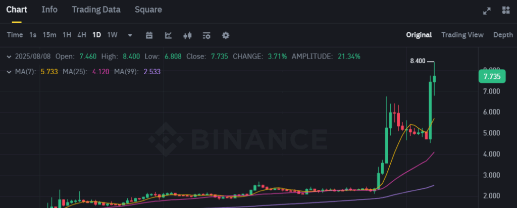 Furthermore, new projects initiated by AS Roma management have boosted market confidence. The club’s international visibility also strengthens expectations regarding the token’s long-term potential. Combined, these factors created a strong upward trend in the price chart. At the time of writing, the token is trading around $7.80.
