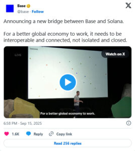 The Solana bridge, announced at the BaseCamp event, allows users to seamlessly transfer assets between chains. It supports interoperability between ERC-20 and SPL-20 tokens, boosting Base’s liquidity.