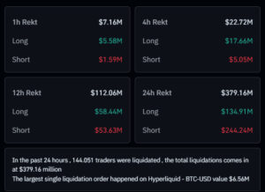 Market volatility was also reflected on the futures side. According to Coinglass data, a total of $379 million worth of positions were liquidated in the last 24 hours. Of this, $244 million came from short positions, while $134 million came from long positions.