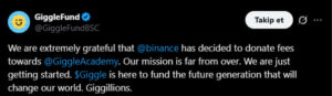 “This collaboration with Binance shows that Giggle Fund is not just a memecoin — it’s a movement centered around social good.”
