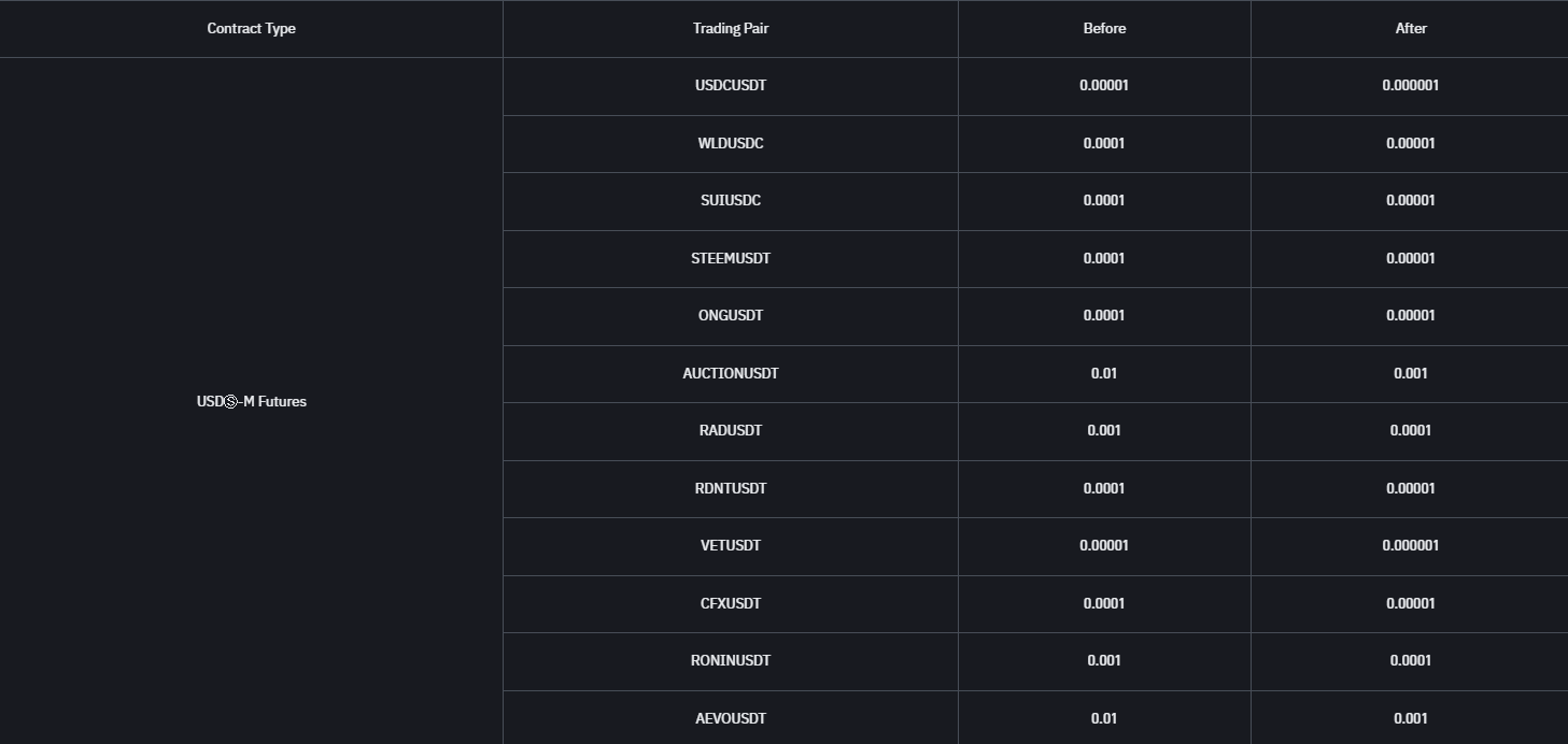 Binance Updates on Tick Size for Multiple Contracts