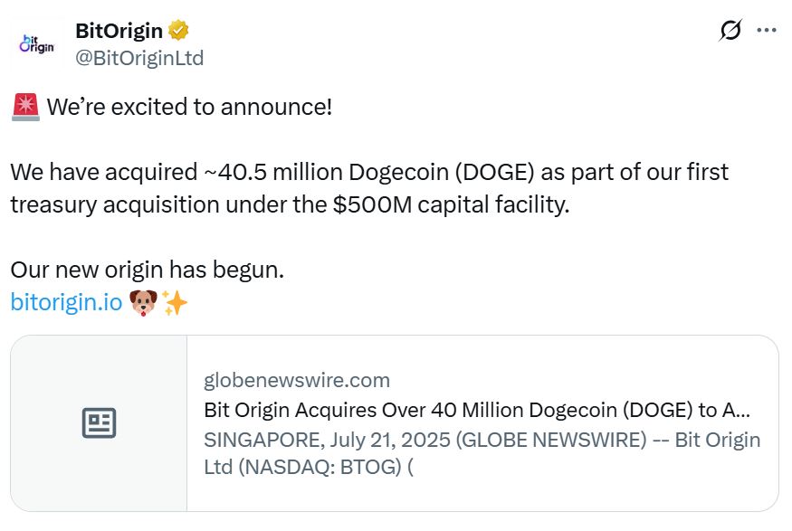 Bit Origin’s move is more than just an investment; it sends a message. The company aims to show that Dogecoin is not merely a “meme coin” but possesses real reserve strength.