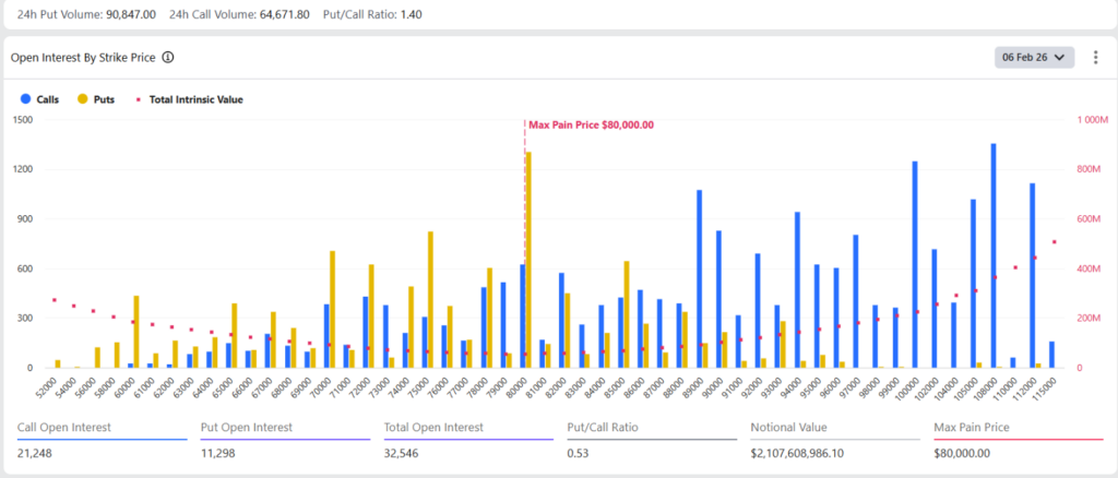 On February 6, more than 32,000 BTC options expired on Deribit. With a nominal value of $2.1 billion, this created significant volatility in the options market. Put option volume exceeded calls, increasing downside pressure; BTC’s implied volatility fell from 90 to 69 within hours.