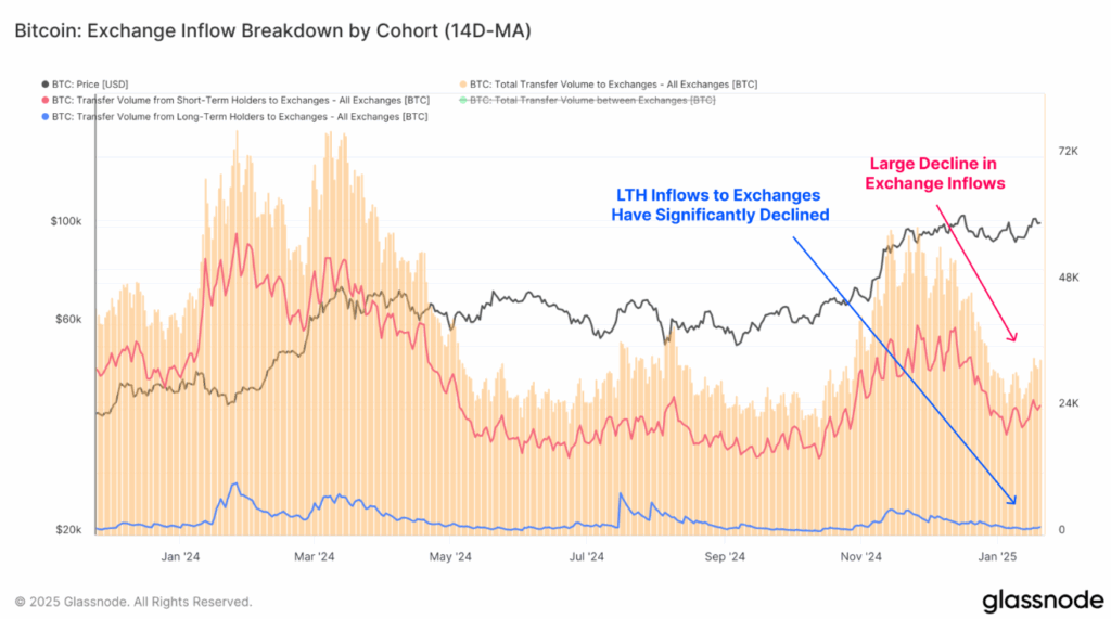 Bitcoin Exchange Entry Distribution by Cohort (14D-MA)