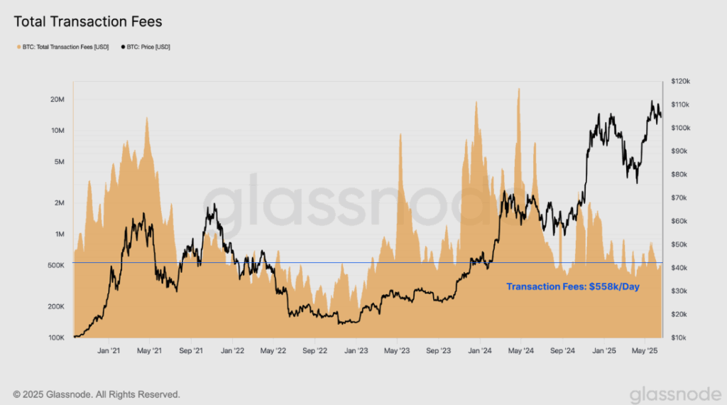 BTC is only 6% away from its all-time high of $111,700. Despite this surge, the network shows remarkable calmness, with a noticeable drop in transaction counts.