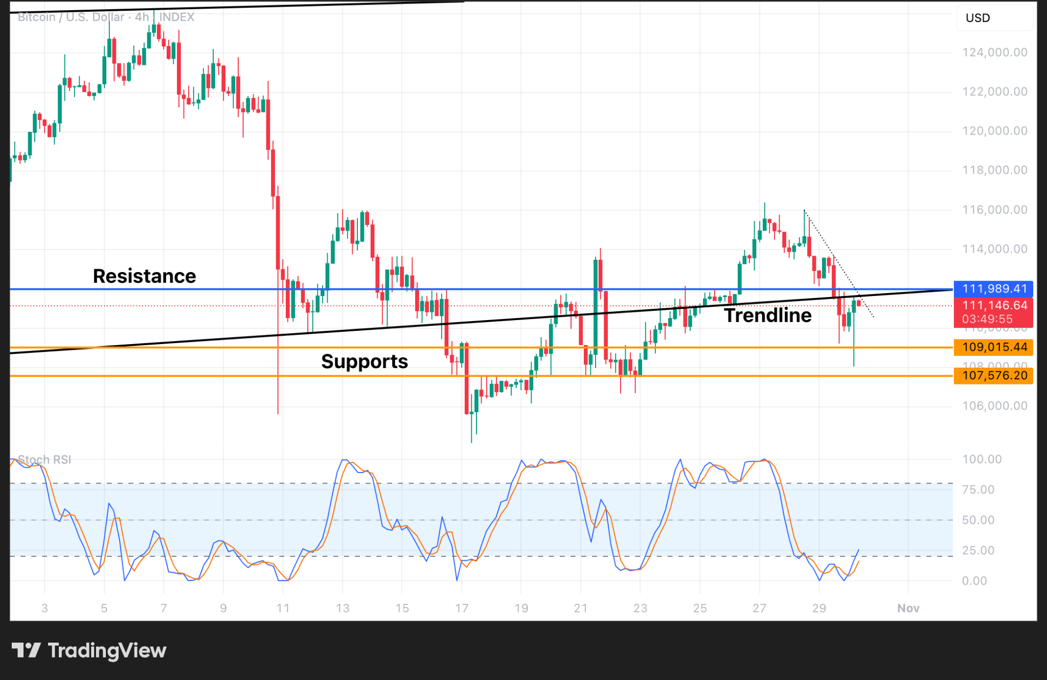Bitcoin recently retraced to $108,000, and although it bounced back quickly, the price is now positioned below a key ascending trendline. This trendline, combined with the $112,000 horizontal resistance and a minor local descending trend, creates a formidable barrier that may be difficult to overcome.