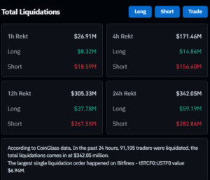 With the recent rise, significant liquidations also occurred in the crypto derivatives market. In the last 24 hours, positions worth a total of $340.98 million were liquidated.