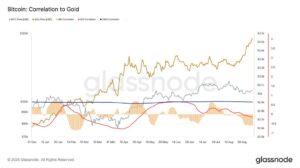 Bitcoin’s negative correlation with gold shows that it is shifting away from the traditional safe haven narrative, increasingly being viewed as a risk-on asset.