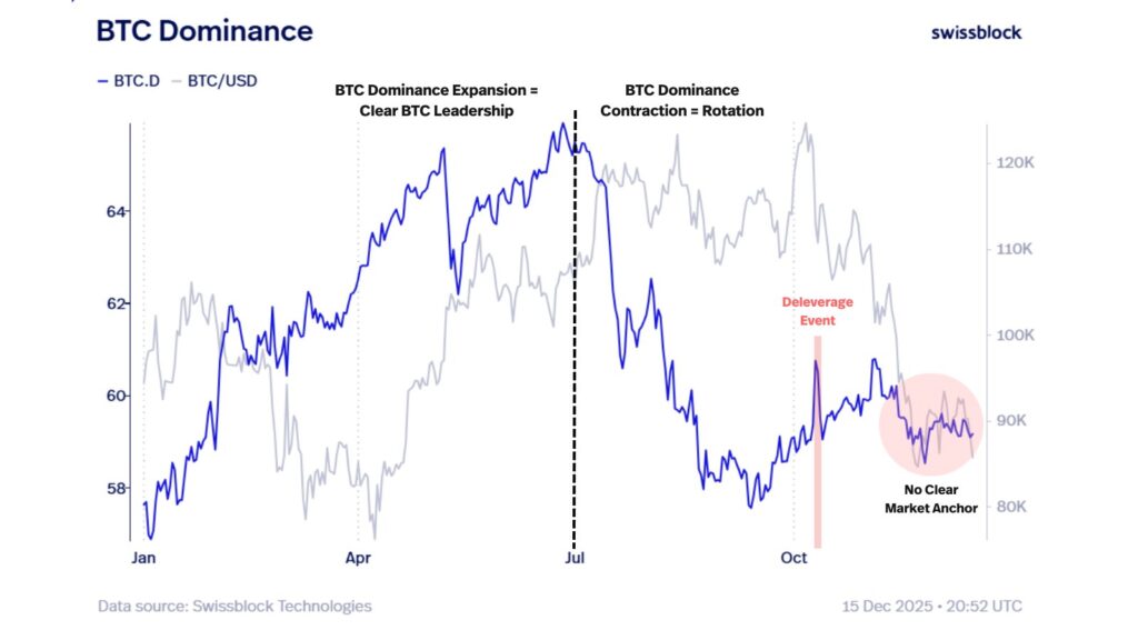 This trend demonstrates investor behavior leaning toward lower-risk assets, and capital concentration reinforces BTC market dominance. Overall, the past three months confirm Bitcoin’s relative strength while highlighting a market still searching for a clear leader.