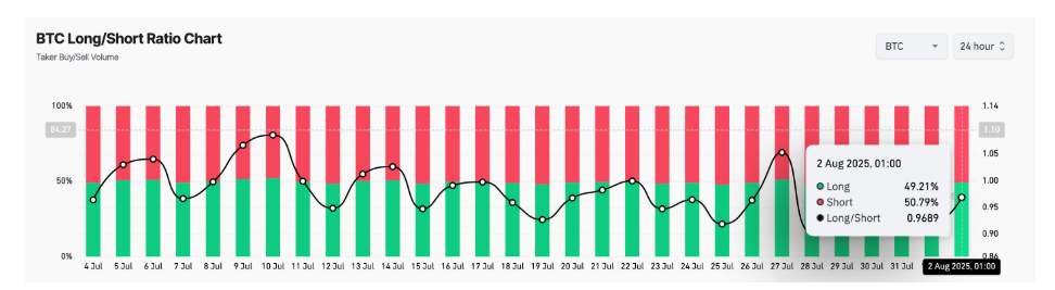 At the same time, the decrease in long exposure creates room for downward movement. Unless a new bullish catalyst emerges, BTC may struggle to regain upward momentum.