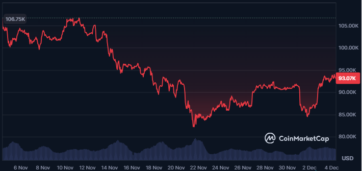 These insights surfaced just before Bitcoin rallied toward the 94,000-dollar range. At the time of writing, Bitcoin is trading near 93,000 dollars, according to data from CoinMarketCap.