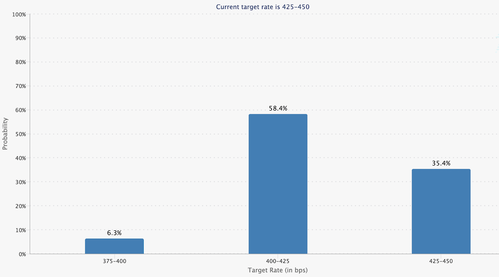 According to the CME Group’s FedWatch Tool, the FOMC now projects only two 25-basis-point rate cuts in 2025, down from four previously. Markets are currently pricing in just a 58.4% chance of a rate cut in September.