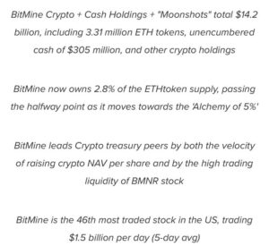 This strategic move underscores the continued strength of institutional demand for Ethereum and solidifies BitMine’s position among the largest ETH holders globally.