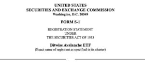 Crypto asset manager Bitwise has filed an S-1 application with the U.S. Securities and Exchange Commission (SEC) to launch a spot ETF tracking Avalanche (AVAX). If approved, Coinbase Custody will serve as the fund’s custodian.