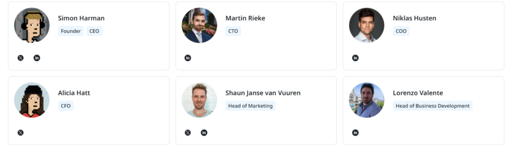 Founder & CEO: Simon Harman, an experienced blockchain professional leading the project.