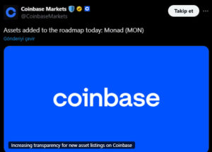 U.S.-based crypto giant Coinbase has announced the addition of a new potential asset to its listing roadmap Monad (MON). According to the company’s statement, MON is now officially part of Coinbase’s roadmap, signaling that the token could soon be listed on the exchange. The news has generated strong interest and anticipation among investors.