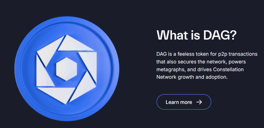 Constellation (DAG) is a next-generation network designed to solve the speed, cost, and scalability issues of blockchains. Instead of traditional chains, it uses a unique architecture called DAG (Directed Acyclic Graph). This allows transactions to be feeless, the network to auto-scale with demand, and security to remain robust.