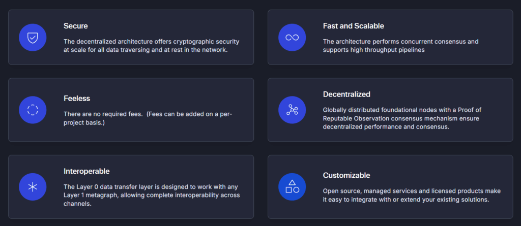 - Metagraph Architecture: Projects define their own rules, tokenomics, and logic.