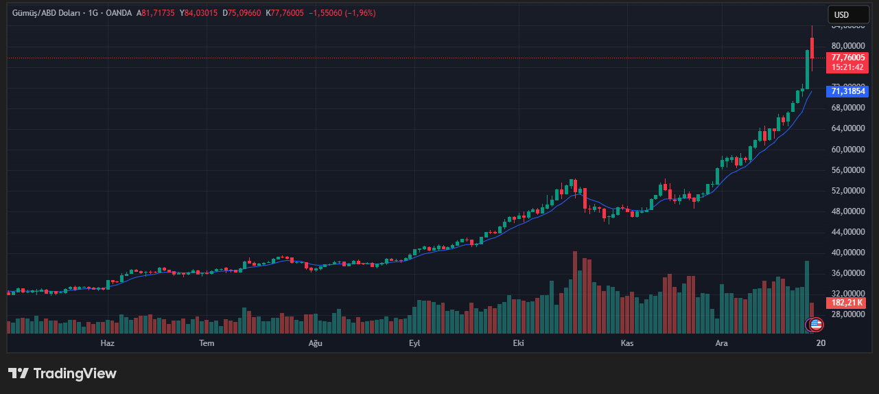 The sharp move lower from peak levels highlights silver’s sensitivity to shifts in sentiment. While demand remains strong, especially from industrial sectors, short-term corrections have become more frequent as prices push into uncharted territory.