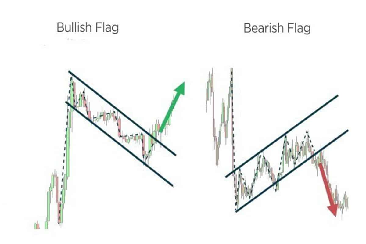 Flag Pattern: A temporary pause in a trending market, resembling a flagpole followed by a rectangular consolidation phase. A breakout above/below the flag confirms trend continuation.