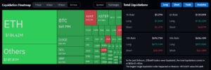 - Ethereum alone saw $183 million liquidated, with $170 million from long ETH trades.