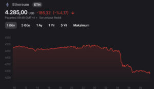 - Ethereum (ETH) dropped to $4,285. Despite ongoing activity in the DeFi and NFT ecosystems, this decline deepened as leveraged long positions were liquidated. According to analysts, Ethereum will need strong buying support to reclaim the $4,300 level.