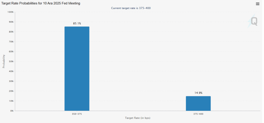 The improvement gained speed with expectations that the Fed could cut interest rates. Slowing inflation and a cooling labor market pushed the probability of a December rate cut to 85%. This environment boosted risk appetite. The movement in tech stocks carried momentum into digital assets. Investors, seeing recession risks weaken, took more aggressive positions. This behavior supported crypto and strengthened the upward setup.