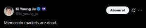 CryptoQuant CEO Ki Young Ju shared a striking assessment of the memecoin market, stating that interest in memecoins has weakened significantly based on the latest data. According to Ju, declining investor attention and capital flows shifting to other areas indicate that the memecoin segment has effectively reached the end of its lifecycle.
