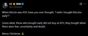 Changpeng Zhao’s (CZ) remarks serve as an important reminder for crypto investors. According to CZ, instead of making impulsive decisions driven by fear at price peaks, early and informed investments offer significant long-term advantages. This perspective underscores the importance of acting strategically without being swayed by short-term market movements and highlights the value of patience and planning in Bitcoin investing.