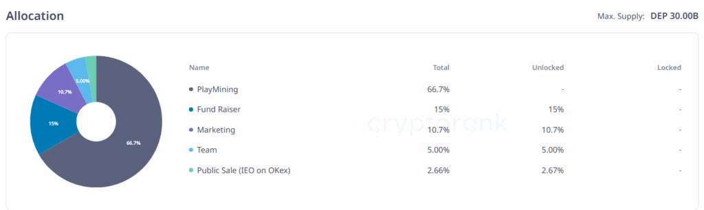 - Staking & Security: Users stake DEP to secure the network and gain governance rights.