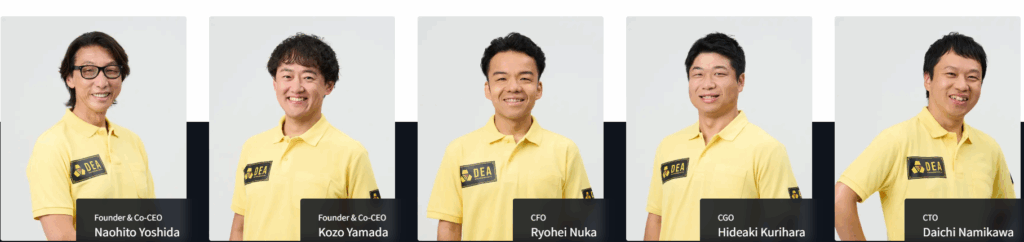 - Naohito Yoshida (Co-Founder & Co-CEO): Serial entrepreneur blending gaming and blockchain technologies; founded three public companies before DEA.