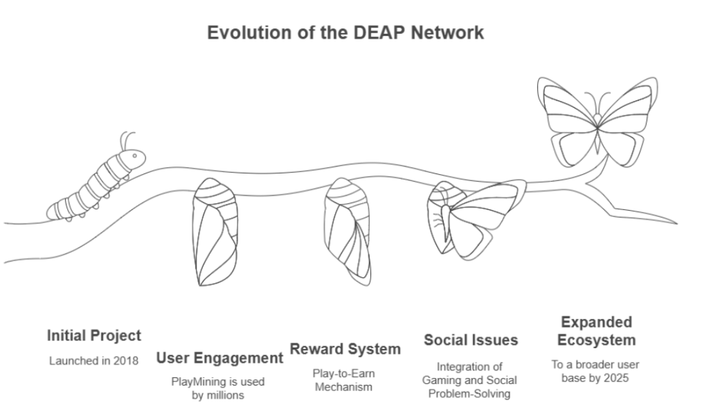 DEAPcoin (DEP) is the native cryptocurrency of the DEAP Network, a DePIN (Decentralized Physical Infrastructure Network) protocol aimed at collecting and managing individual activity data in a decentralized manner. The project empowers users by recording daily activities such as gaming, exercise, and learning on the blockchain, giving individuals full control over their data.