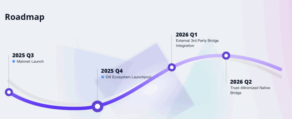 - Q3 2025 – Mainnet Launch: Launch of Dill mainnet with high scalability, security, and decentralization.