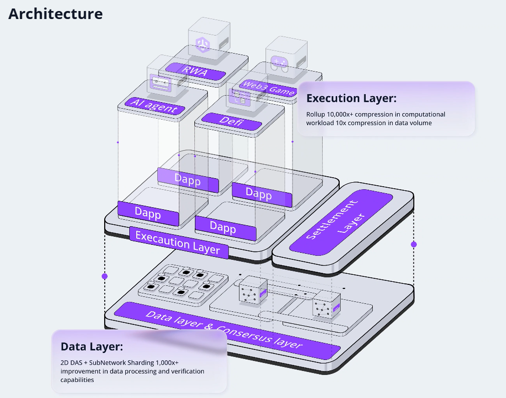 - Execution Layer – Offers application-specific execution environments for independent operation and unlimited scalability.