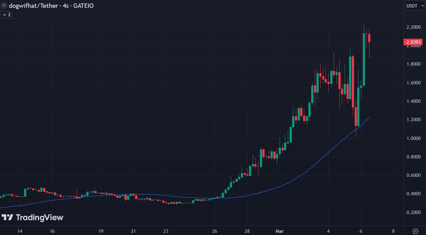 According to CoinMarketCap’s data Dogwifhat price has rose over 19% and currently trading at $2. In last 7 days WIF has risen 164% and countinued to rise even more today.