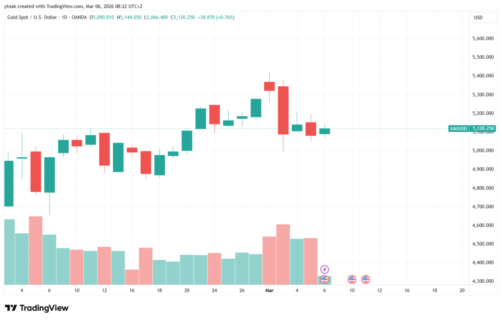 • Gold (XAU/USD): 5,122.71 USD