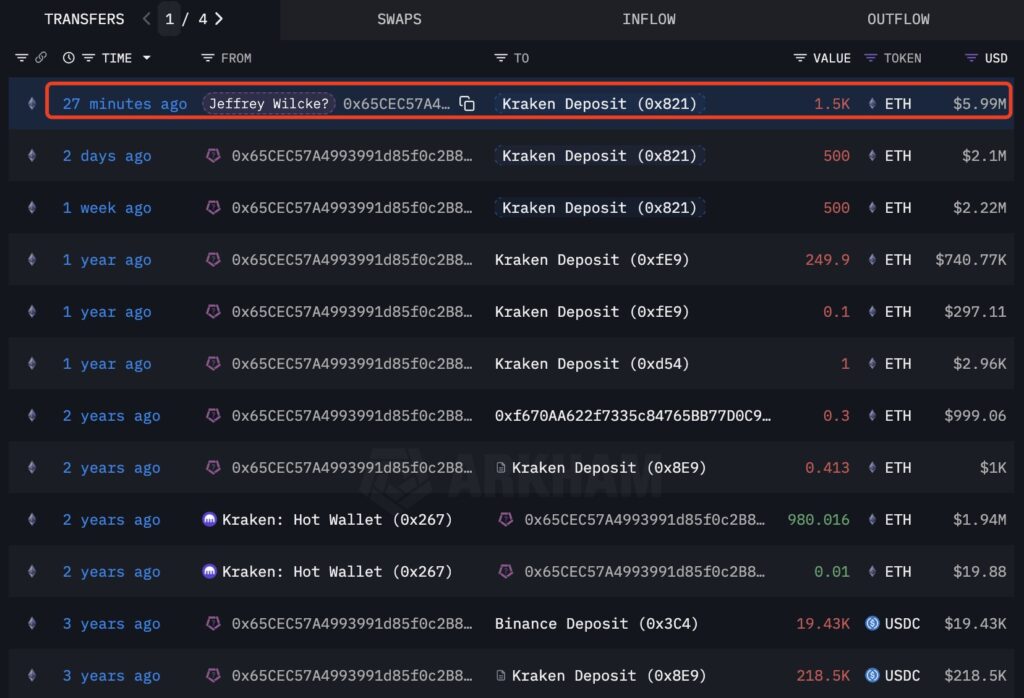 ETH Wilcke Transfers $6 Million in ETH! Is He Selling?