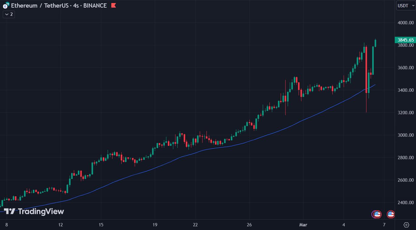 According to CoinMarketCap’s data Ethereum price has rose over 8% and currently trading at $3600. In last 7 days Ethereum has risen 16% and countinued to rise even more today.