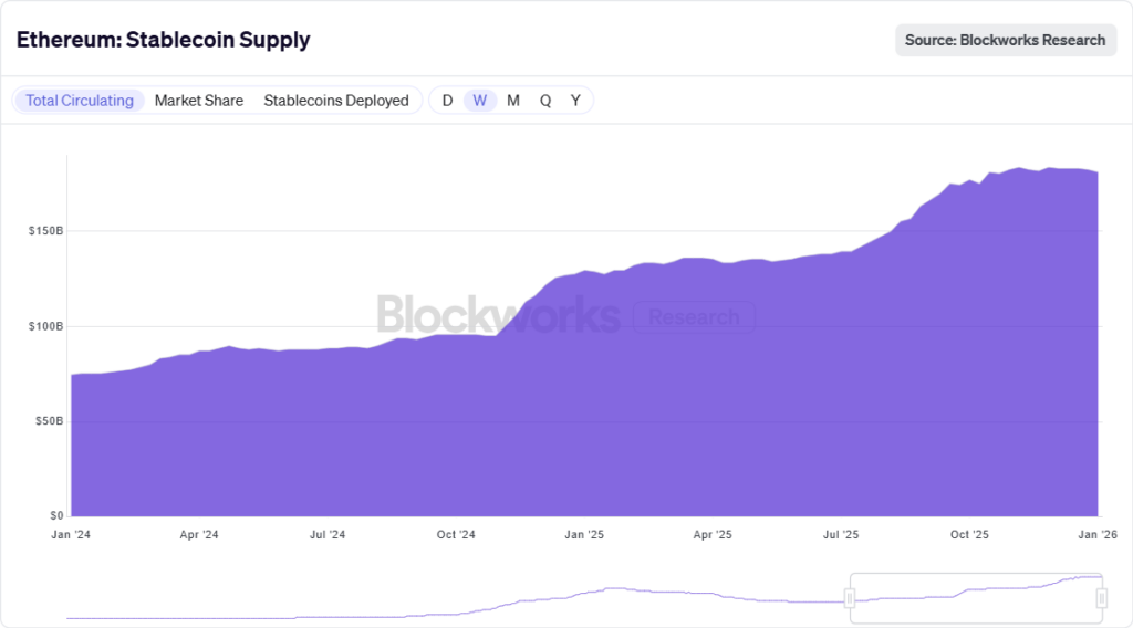 Ethereum maintains a 57% share of the stablecoin market. Roughly 60% of Tether’s USDT supply remains hosted on the network, reinforcing its dominant position. Tron follows with a 27% share, supported by lower transfer costs. This competitive pressure is expected to grow. In 2026, several European banks are preparing euro-denominated stablecoin initiatives that could challenge existing balances.