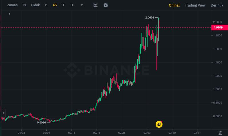 The price recently achieved a new all-time high (ATH) at $2 during early trading hours, suggesting a potential minor pullback and consolidation as the price undergoes a discovery phase.