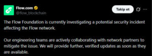 “Our engineering teams are investigating the potential security incident in collaboration with network partners. We will provide updates to the public as confirmed information becomes available.” – Flow Foundation