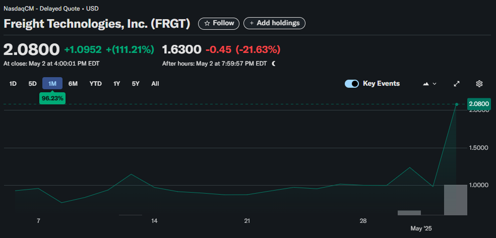 Freight’s stock, which trades on Nasdaq, rose from $0.95 to over $3 on Friday before settling at around $1.63 in after-hours trading—a remarkable 75% gain in just one month.