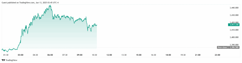 Peter Schiff: “In response to Israel’s airstrike on Iran, the market pushed gold up another $24 in early Asian trading, reaching over $3,410. Bitcoin, on the other hand, fell below $104,500. Bitcoin priced in gold is now more than 15% below its November 2021 peak. Bitcoin’s inability to rise against gold is strong evidence that the bubble has topped.”